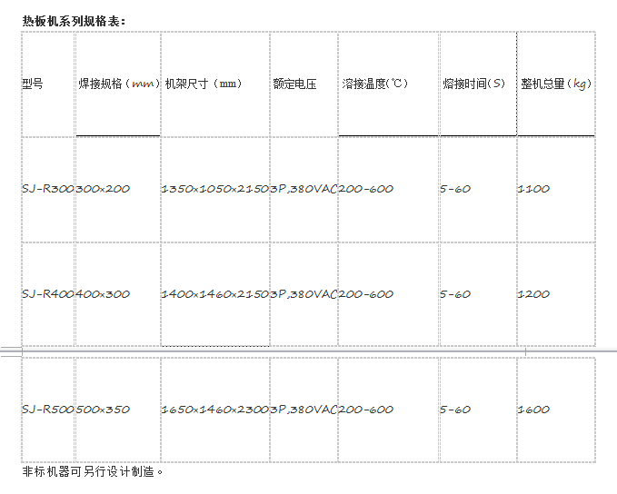 热板机设备用途:本设备采用热板焊接机原理,可以对塑料制品进行可靠性焊接,如蒸汽熨斗、汽车塑料水箱焊接、汽车刹车油杯的焊接、塑料罐焊接、汽车尾灯焊接及其它异形塑料产品的焊接。